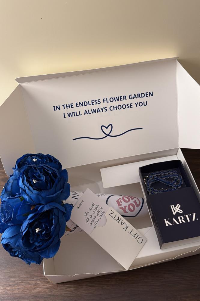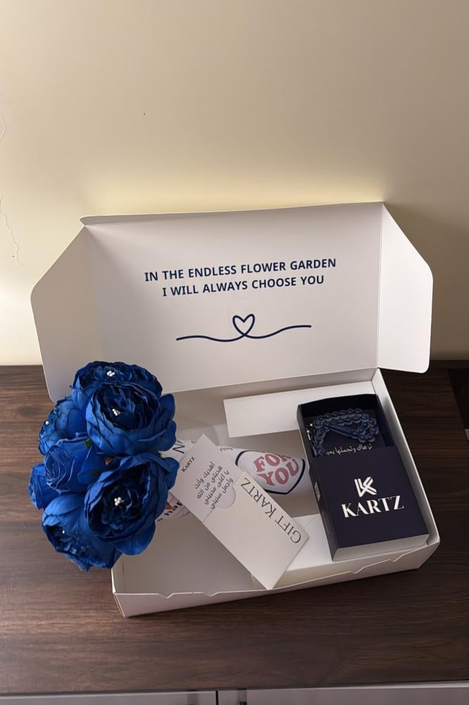 بوكس كارتز ورد صناعي أزرق مع مسبحه رجاليه لاضافة كرت يرجى الكتابه بالملاحظات التنفيذ من 1-2 يوم مدة الشحن مابين 3-7 يوم لايوجد الغاء بعد التنفيذ